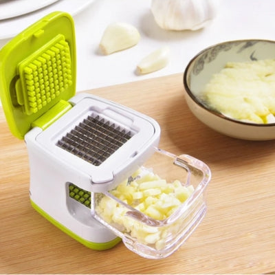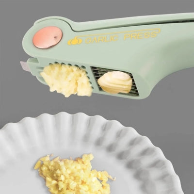 Notre presse ail | Double'press™, est l’ustensile idéal pour hacher ou trancher l’ail rapidement, sans effort et sans odeur persistante sur les mains. Grâce à son système de double lames et à son mécanisme ergonomique, il garantit une coupe régulière et une libération optimale des arômes en quelques secondes. Conçu en acier inoxydable et ABS, il est robuste, confortable à utiliser et nécessite peu de pression. Polyvalent, il s’adapte aussi au gingembre, aux échalotes ou aux noix. Facile à nettoyer et compatible lave-vaisselle, il devient vite un indispensable du quotidien en cuisine.